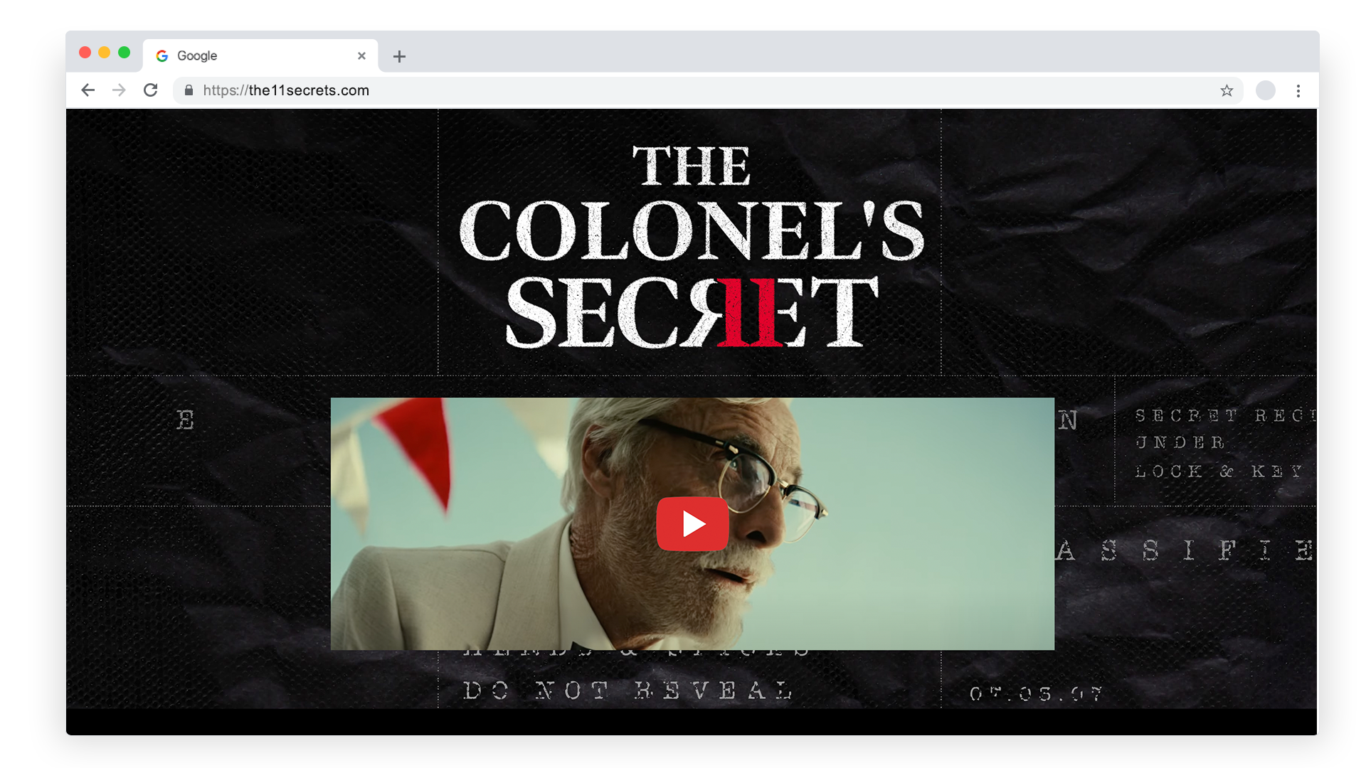 The commercial also doubled as a treasure hunt. Hidden within the spot were 11 secret puzzles which rewarded the first person to solve each one with 11 months of free KFC. Articles were written about it, fans made spreadsheets, and all puzzles were eventually solved.